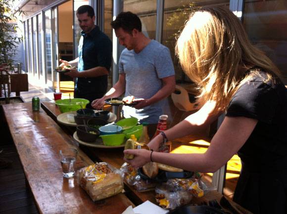 Chef Yessian dialed up some Al Fresco Luxury dogs for lunch today outside on the Blue Ion Terrazza. Chicken, turkey and beef sausage with toppings including slaw, mushrooms and peppers...